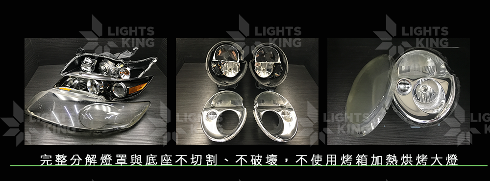 為了確保大燈的完整性,分解燈具時不切割、不破壞,不使用烤箱加熱烘烤。