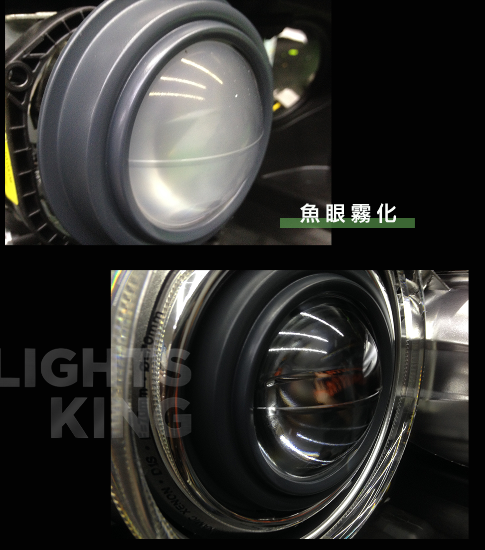 魚眼霧化及電鍍飾板霧化處理,讓光線恢復最佳的穿透力、焦距準確度, 有效提升燈光亮度。